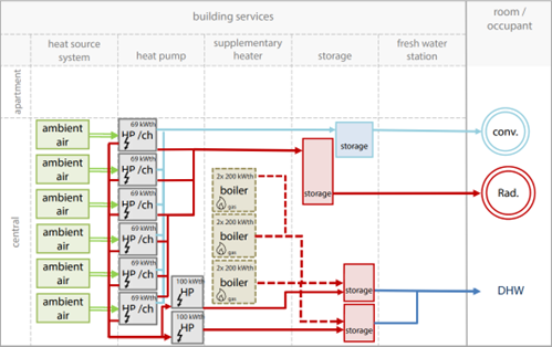 Heat distributionradiators + fan coil radiatorsOperation modebivalent, cascade
