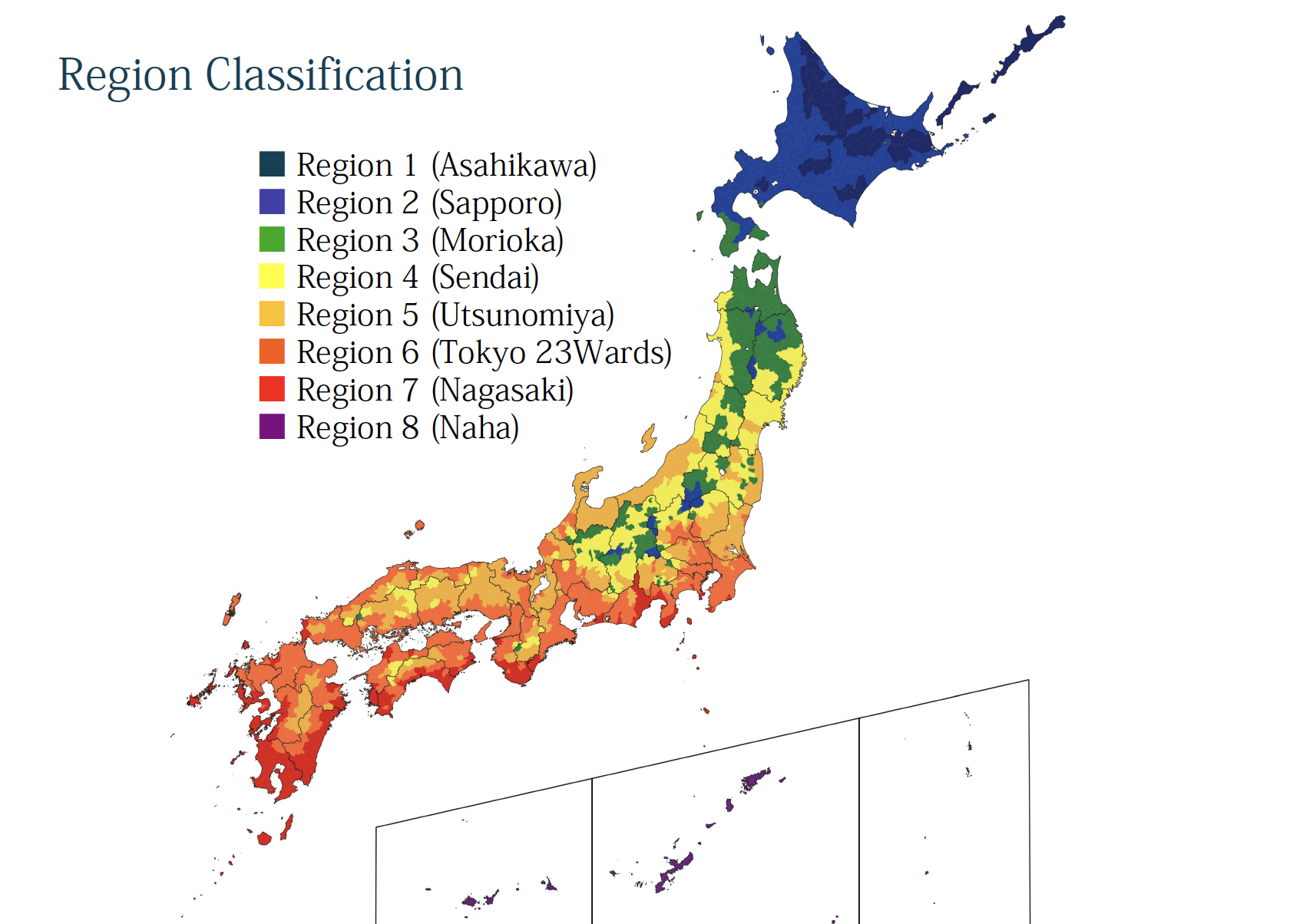 In Japan, eight regional classifications are defined, as shown in Figure 2. Generally, regions 1 to 4 are often defined as cold regions. [2], [3]