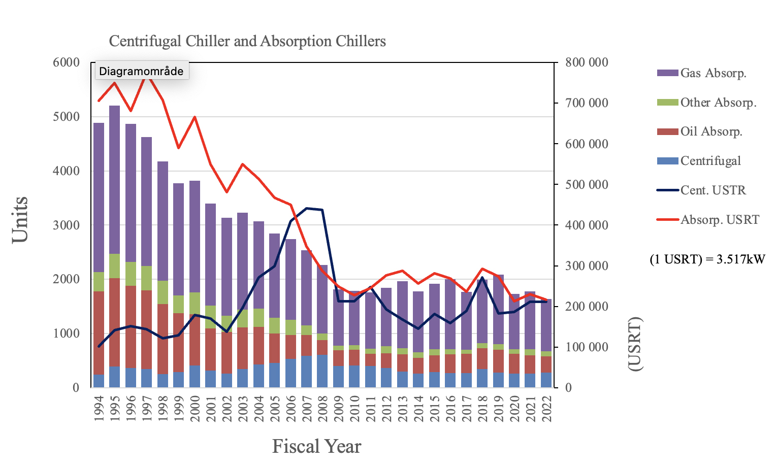 These data suggest that small-scale absorption-type chillers have replaced high-efficiency chillers, given the flat market size.