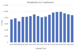 These data suggest that small-scale absorption-type chillers have replaced high-efficiency chillers, given the flat market size.