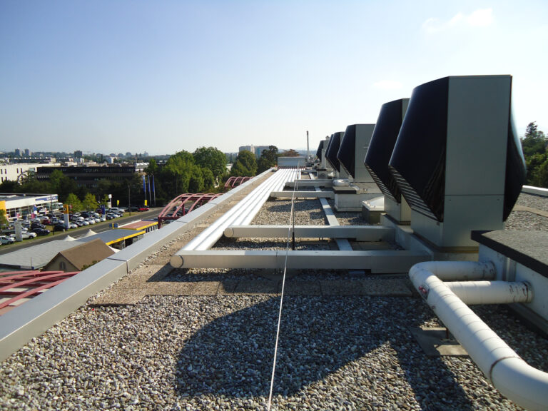 Figure 3: Case study “Daru” from the University of Geneva: Six 31 kW air-to-water heat pumps were installed on the roof of an unrenovated residential building built in 1992. They cover about 70% of the building’s heating requirements. Photo: UNIGE
